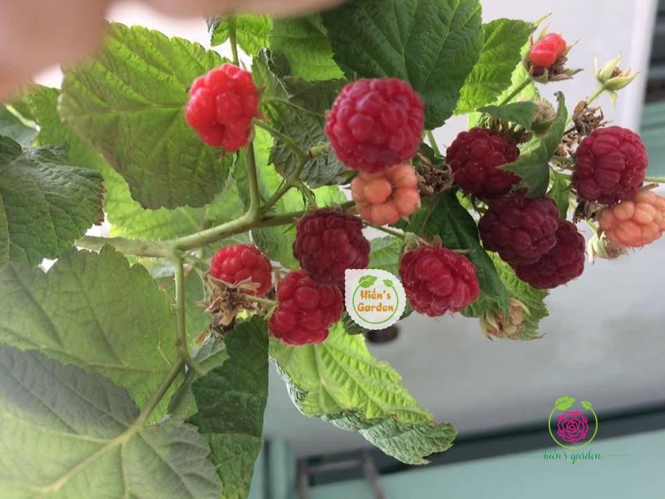Quả mâm xôi phổ biến có màu đỏ, ngoài ra Hiền’s Garden còn có bán những cây giống mâm xôi màu vàng và màu đen ( cây màu đen có trái to nhất, mọng nước nhất và ngọt nhất, tuy nhiên thời gian cho trái lâu hơn 2 màu quả còn lại ( tầm 7 tháng ) .